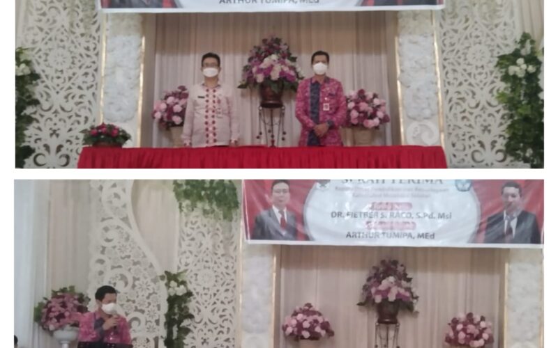 PIRNAS.COM | Minsel – Telah dilaksanakan serah terima jabatan kepala Dinas Pendidikan Kabupaten Minahasa selatan(Minsel) dari Kepala Dinas Dr Fietber Raco s.pd. M.si (kadis yang lama) kepada Arthur Tumipa MEd (kadis yang baru) Pada Kamis 31/3/2022.