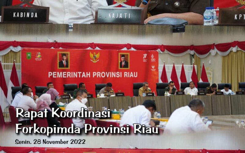 PIRNAS.COM | RIAU – Pada hari Senin tanggal 28 November 2022 Pukul 09.30 WIB sampai dengan selesai, Bertempat di Balai Serindit Aula Gubernuran, Kepala Kejaksaan Tinggi Riau yang diwakili oleh Asisten Intelijen Kejaksaan Tinggi Riau (Raharjo Budi Kisnanto, SH., MH) menghadiri Rapat Koordinasi Terkait Antisipasi Perkembangan Situasi Kamtibmas, Potensi ATHG Kenaikan Harga, Penanganan Inflasi Dan Ketersediaan Bahan Pokok Jelang Natal dan Tahun Baru.