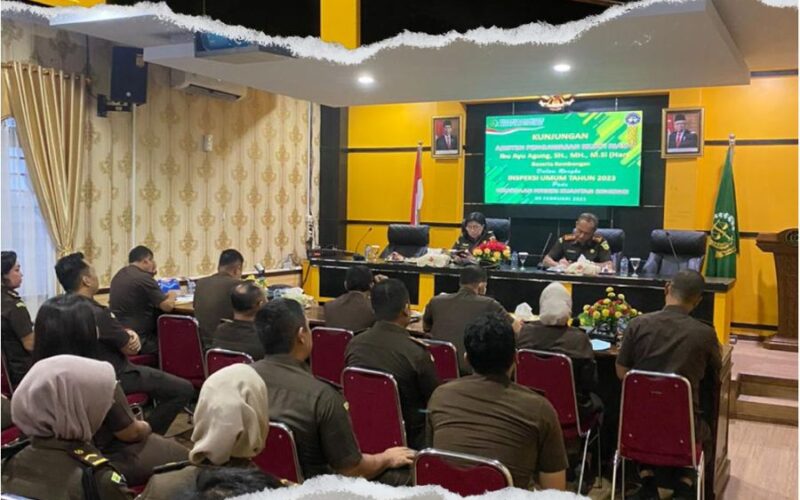 PIRNAS.COM | Pekanbaru – Dalam rangka Inspeksi Umum tahun 2023, Asisten Pengawasan Kejaksaan Tinggi Riau Ayu Agung, SH., S. Sos., MH., M. Si (HAN) bersama seluruh Pemeriksa dan Auditor bidang Pengawasan Kejaksaan Tinggi Riau melaksanakan Kunjungan Kerja ke Kejaksaan Negeri Kuantan Singingi.