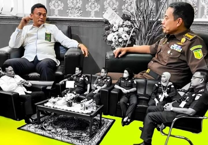 Kunjungan Kerja dan Sekaligus Silaturahmi Asisten Pidana Militer Kejaksaan Tinggi Riau dengan Ketua Pengadilan Negeri Pekanbaru mengikuti secara ketat protokol kesehatan (prokes).” Sumber