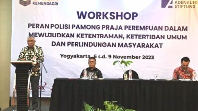 PIRMAS.COM | Yogyakarta – Badan Pengembangan Sumber Daya Manusia (BPSDM) Kementerian Dalam Negeri (Kemendagri) bekerja sama dengan Konrad Adenauer Stiftung (KAS) Jerman Perwakilan Indonesia dan Timor Leste menggelar Workshop Peran Polisi Pamong Praja Perempuan dalam Mewujudkan Ketentraman, Ketertiban Umum dan Perlindungan Masyarakat. Workshop ini berlangsung di Hotel Horison Ultima, Yogyakarta, Selasa (7/11/2023).