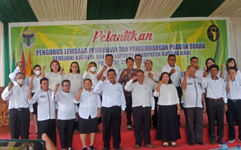 PIRNAS.COM | BATANGHARI – Pengurus Lembaga Pembinaan dan Pengembangan Paduan Suara Gereja Khatolik Daerah (LP3KD) Kabupaten Batang Hari Resmi dilantik oleh Bupati Batang Hari dalam hal ini di wakilkan oleh Ansori selaku Kepala Kesbangpol kabupaten Batang Hari di Gereja Khatolik Santo Lukas kelurahan Kampung Baru, Kecamatan Muara Tembesi Minggu 26 Juni 2022 dengan tema ” Membangun Persaudaraan Sejati Menuju Batang Hari Tangguh. ”