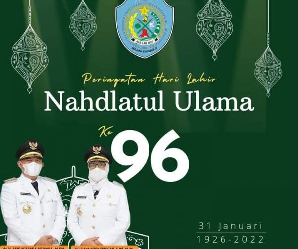 PIRNAS.COM | LABUHAN BATU – Bupati Labuhanbatu dan wakil Bupati Labuhanbatu dr. Erik adtrada Ritonga dan Hj. Elya Rosa Siregar ucapkan selamat Hari Lahir buat Nahdhatul Ulama ( NU ) yang ke 96 tahun, Kabupaten Labuhanbatu, Sumatera utara, senin(30/1/2022).