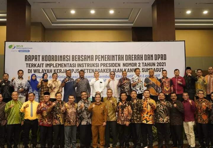 Bupati H. Edimin Hadiri Acara Rapat Koordinasi Pemerintah Daerah dan DPRD Terkait Implementasi Intruksi Presiden Nomor 2 tahun 2021 di Wilayah Kerja BPJS Ketenagakerjaan Kanwil Sumbagut