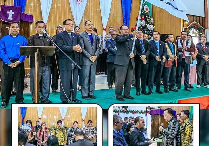 PIRNAS.COM | LABUHANBATU – Bupati Labuhanbatu dr.H.Erik Adtrada Ritonga,MKM diwakili Kepala Bappeda Hobol Zulkifli Rangkuty hadiri pelantikan Majelis Pekerja Harian Persekutuan Gereja-Gereja Indonesia (MPH-PGI) Daerah Kabupaten Labuhanbatu periode 2022-2027 yang dilaksanakan di Gedung Gereja GKPI Rantauprapat-Jl. Singosari. Jumat (09/12/2022).