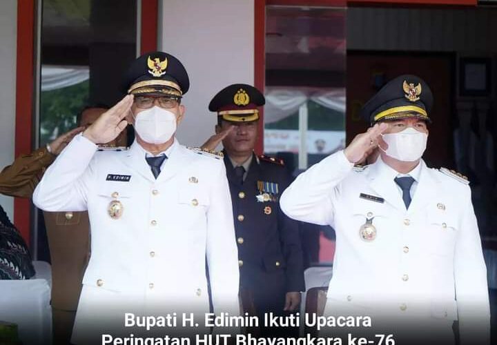 PIRNAS.COM | LABUHANBATU – Bupati Labuhanbatu Selatan, H. Edimin Mengikuti Upacara Peringatan HUT BHAYANGKARA ke-76 di Lapangan Apel Mapolres Labuhan Batu, Selasa (05/07/2022).