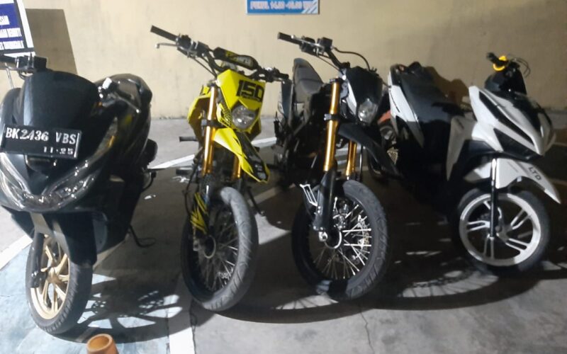 “Patroli aksi balap liar petugas berhasil amankan 4/empat unit Sepeda Motor yang menggunakan Knalpot Brong diantaranya, 1 /satu unit Sepeda Motor Honda CRF BK 2505 QAK warna kuning dan 1/satu Honda CRF tanpa plat dengan knalpot Brong, 1/satu unit Honda Vario 150 tanpa plat serta 1/satu unit Honda PCX No. Pol. BK 2436 VBS, Keseluruhan kendaraan diamankan di Polres Tanjung balai. ” Tegas Hutapea.