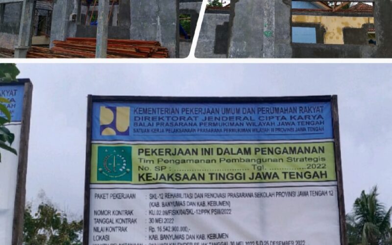 PIRNAS.COM | Banyumas – Untuk kenyamanan dalam proses pendidikan, Pemerintah pusat melalui Kementerian Pekerjaan Umum dan Perumahan Rakyat (PUPR) Direktorat Jenderal Cipta Karya. Melaksana rehabilitasi dan renovasi prasarana sekolah, yang dilaksanakan oleh PT. UA. Pekerjaan Tersebut terdiri dari 12 Paket pekerjaan meliputi Kabupaten Banyumas dan Kebumen. Dengan nilai Kontrak Pekerjaan sebesar Rp.16.542.900.000.