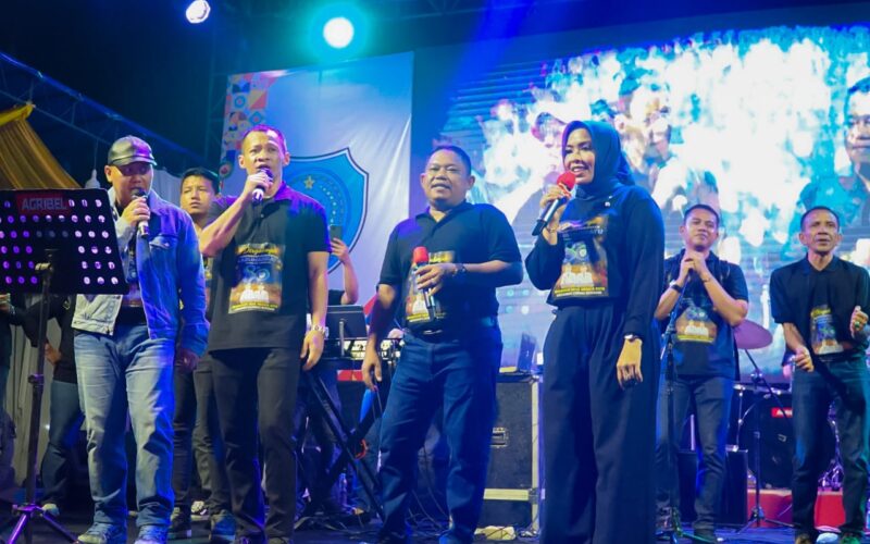 Suasana pecah, masyarakat ikut bernyanyi ketika Bupati dan Wakil Bupati Labuhanbatu bersama Forkopimda menyanyikan lagu dengan diiringi oleh bintang tamu Mesa Hira Indonesian Idol.