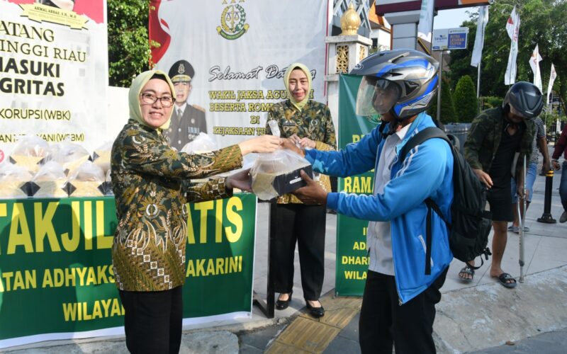 PIRNAS.COM | RIAU – Bahwa pada hari Rabu Tanggal 12 April 2023 sekira pukul 16.30 Wib Bertempat di Depan Kantor Kejaksaan Tinggi Riau, Jalan Jendral Sudirman, Kota Pekanbaru, Provinsi Riau, Ikatan Adhyaksa Dharmakarini (IAD) Wilayah Riau melakukan kegiatan sosial berupa bagi bagi takjil kepada masyarakat yang melintas di depan Kantor Kejaksaan Tinggi Riau, Jalan Jendral Sudirman, Kota Pekanbaru Provinsi Riau.