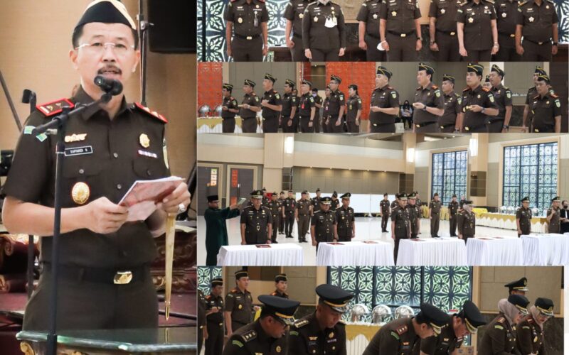 PIRNAS.COM | Pekanbaru – Kepala Kejaksaan Tinggi (Kejati) Riau Dr. Supardi memimpin acara Pengambilan Sumpah Jabatan, Pelantikan dan Serah Terima Jabatan Asisten Intelijen, Asisten Pidana Khusus, Kepala Kejaksaan Negeri Pekanbaru, Siak, Indragiri Hilir, Kepulauan Meranti, dan Koordinator pada Wilayah Hukum Kejaksaan Tinggi Riau.