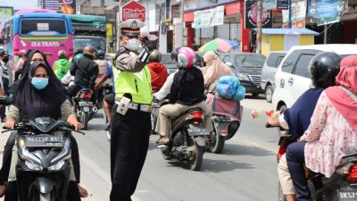Kapolres Batu Bara melaksanakan pengaturan lalu lintas di Jalinsum Indrapura – Lima Puluh tepatnya Di Depan Pajak Delima, Kec. Air Putih Kab. Batu Bara. Sumatera Utara, memberikan himbauan kepada masyarakat/pengendara sepeda motor agar tidak melawan arah agar tidak terjadi kemacetan.