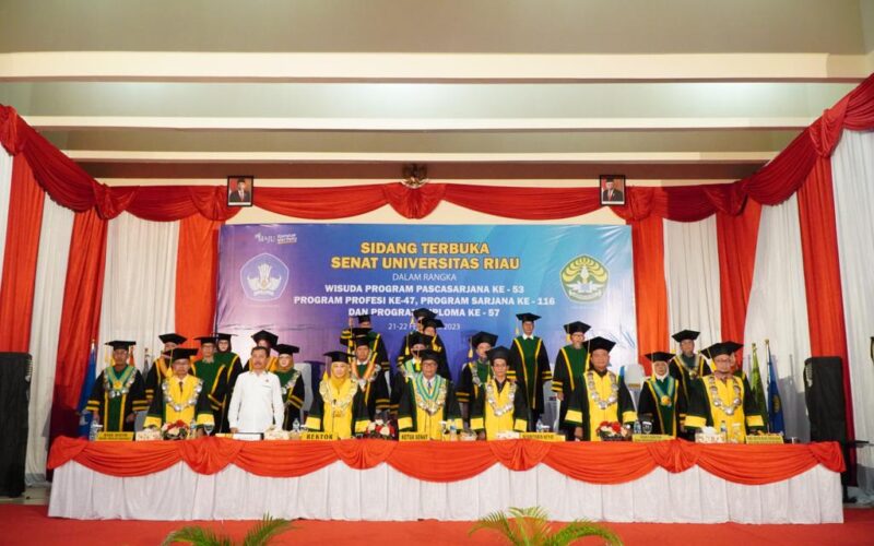 Kegiatan Sidang Terbuka Senat Universitas Riau dalam Rangka Wisuda Program Pascasarjana Ke-53, Program Profesi Ke-47, Program Sarjana Ke-116 dan Program Diploma Ke-57 berjalan aman, tertib dan lancar serta menerapkan secara ketat protokol kesehatan (prokes). tutup Kasi Penkum Kejati Riau.