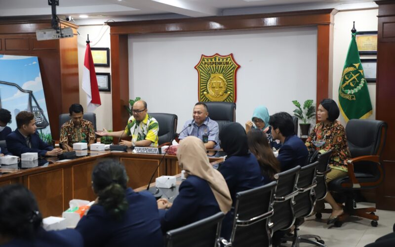PIRNAS.COM | Jakarta – Kepala Pusat Penerangan Hukum (Kapuspenkum) Dr. Ketut Sumedana di Press Room Kejaksaan Agung menerima kunjungan 36 orang mahasiswa Program Studi Ilmu Hukum President University dalam rangka Law School Visit: President University Major Association (PUMA) Law Goes to Kejaksaan Agung RI.