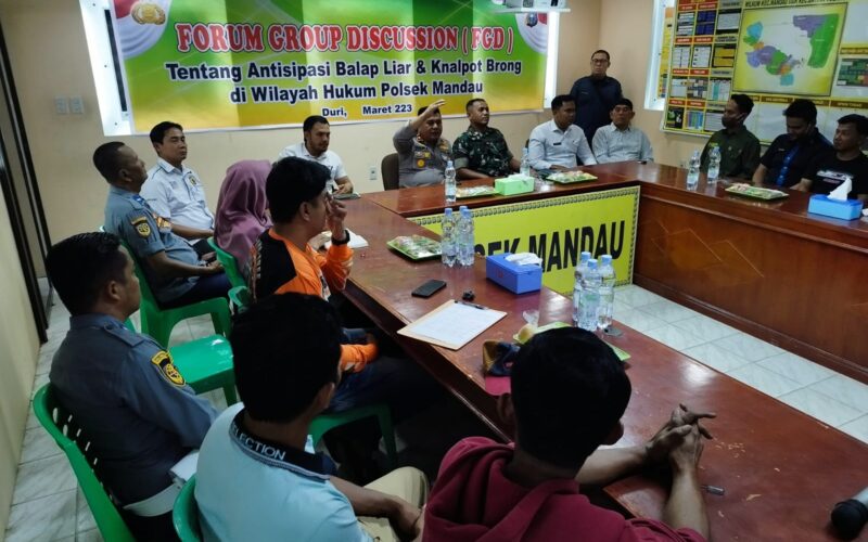 PIRNAS.COM | BENGKALIS –  Jajaran Mapolsek Mandau Gelar Forum Group Discussion (FGD) Pada hari Rabu tanggal 15 Maret 2023 pukul 09.30 WIB, Guna mengantisipasi balap liar dan knalpot brong di Kota Duri.