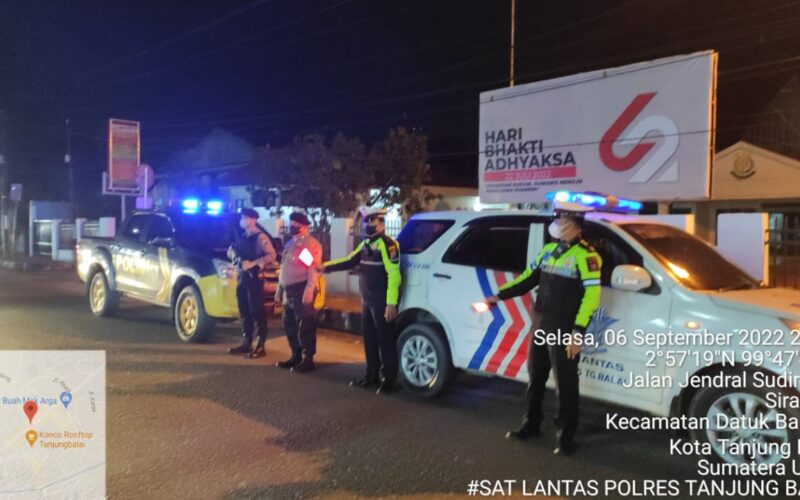 PIRNAS.COM | TANJUNGBALAI – Mencegah Terjadinya Pelanggaran Lalulintas ( Lalin ). Selasa. 6 September 2022, sekitar Pukul 21.00 Wib, Personil Polres Tanjungbalai melakukan Patroli Blue Light dan Penjagaan Arus Lalin di Wilayah Hukum Kota Tanjungbalai, Polda Sumut.