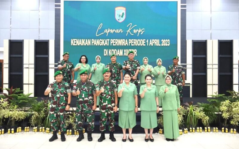 Adapun 23 perwira Kodam XII/Tpr yang mendapatkan kepercayaan untuk dinaikkan pangkatnya satu tingkat lebih tinggi pada periode 1 April 2023 kemarin terdiri dari, Letkol ke Kolonel 2 orang, Mayor ke Letkol 1 orang, Kapten ke Mayor 1 orang, Lettu ke Kapten 12 orang dan Letda ke Lettu 7 orang.
