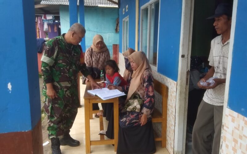 PIRNAS.COM | Sukabumi – Babinsa Desa Pangkalan Koramil 0622-04/Cikidang Peltu Dasik Darmawan mendampingi kegiatan Puskesmas Keliling di Kp Cangkore Desa Pangkalan Kec Cikidang.