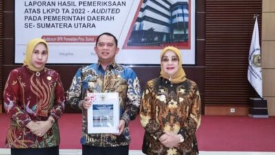 PIRNAS.COM Labuhanbatu -Pemerintah Kabupaten (Pemkab) Labuhanbatu menerima predikat opini Wajar Tanpa Pengecualian (WTP) dari Badan Pemeriksa Keuangan RI perwakilan Sumatera Utara atas Laporan Keuangan Pemerintah Daerah (LKPD) Kabupaten Labuhanbatu Tahun Anggaran 2022.