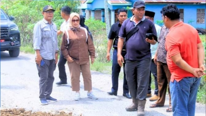 Selain meninjau di Selat Besar Plt. Bupati Labuhanbatu Ellya Rosa Siregar juga meninjau kondisi jalan yang ada di Ajamu. (HYT)