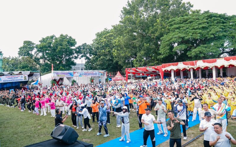 PIRNAS.COM|Labuhanbatu – Ribuan warga memadati Lapangan Ika Bina Rantauprapat, Kecamatan Rantau Utara, Minggu (19/10) pagi, untuk mengikuti senam bersama Bupati Labuhanbatu, dr. Hj. Maya Hasmita, Sp.OG., MKM.