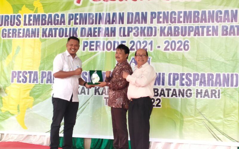 PIRNAS.COM | BATANGHARI – Pengurus Lembaga Pembinaan dan Pengembangan Paduan Suara Gereja Khatolik Daerah (LP3KD)Kabupaten Batang Hari Resmi dilantik oleh Bupati Batang Hari dalam hal ini di wakilkan oleh Ansori selaku Kepala Kesbangpol kabupaten Batang Hari di Gereja Khatolik Santo Lukas kelurahan Kampung Baru,Kecamatan muara Tembesi Minggu 26 Juni 2022 dengan tema ” Membangun Persaudaraan Sejati Menuju Batang Hari Tangguh ”