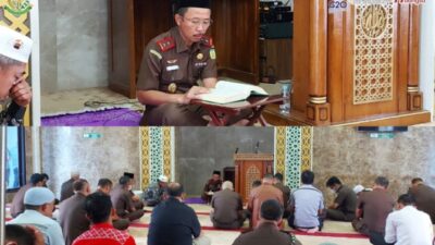 PIRNAS.COM | Pekanbaru – Usai melaksanakan Sholat Zuhur berjemaah di Masjid Al-Mizan , Kepala Kejaksaan Tinggi Riau Dr. Supardi menyampaikan Tausiyah Ba’da Dzuhur dengan tema “Jika kamu menolong (agama) Allah, niscaya Dia akan menolongmu dan meneguhkan kedudukanmu”.