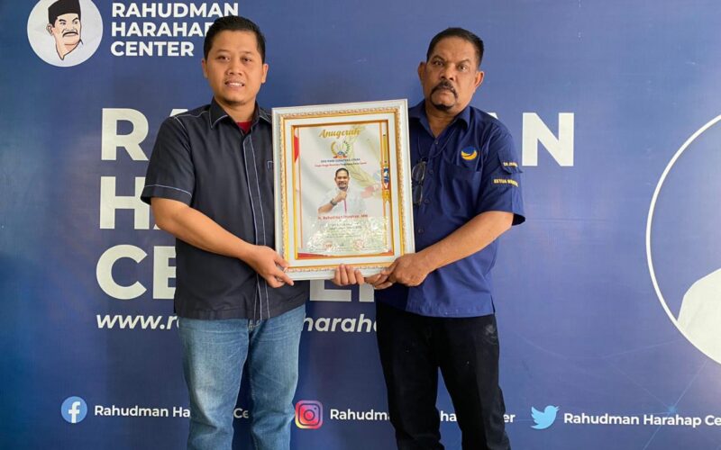 Sekretaris DPD PWRI Sumut, Serahkan Penganugerahan Tokoh Politik Inspiratif Sumut Kepada H. Rahudman Harahap