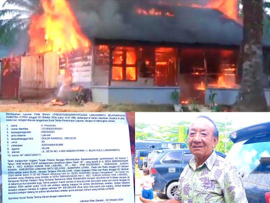 Labusel pirnas.com-Tak terima rumahnya dibakar, pemilik rumah diduga dibakar sekelompok warga di Desa Simandiangin Sabungan, Kecamatan Sei Kanan, Kabupaten Labuhanbatu Selatan, Sumatera Utara, melapor ke Polres Labusel, demikian dilaporkan, Jum’at (3/10/2024)