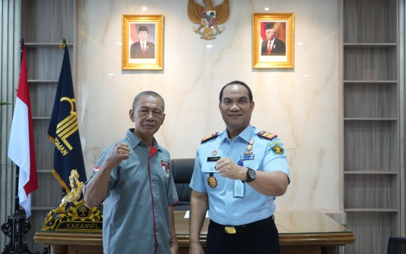 PIRNAS.COM | Palembang – Kakanwil Kemenkumham Sumsel, Dr. Ilham Djaya menerima audiensi pengurus Federasi Kempo Indonesia (FKI) Sumatera Selatan yakni Plt. Ketua FKI Sumsel, Agus Salim, Senin (13/2) diruangan Kakanwil setempat.
