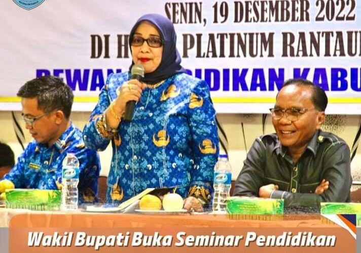 PIRNAS.COM | LABUHANBATU – Wakil Bupati Labuhanbatu Hj. Ellya Rosa Siregar, S.Pd, MM Membuka Seminar pendidikan penguatan komite sekolah/madrasah untuk pendidikan berkarakter bolo Labuhanbatu Tahun 2022 di Aula Hotel Platinum Rantauprapat, Senin (19/12/2022).