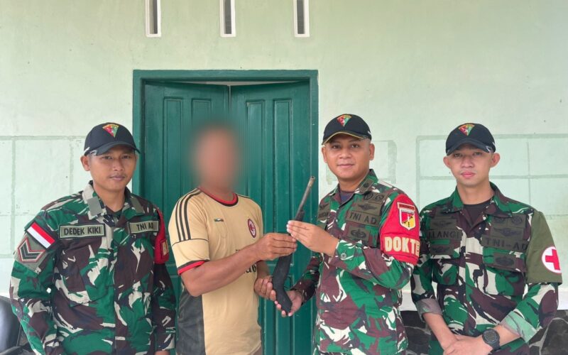 PIRNAS.COM | KAPUAS HULU – Melalui komunikasi dan pendekatan yang humanis antara Satgas Pamtas RI-Malaysia Yonarmed 19/105 Trk Bogani dengan warga perbatasan membuahkan hasil dengan adanya penyerahan 2 pucuk senjata api berupa 1 (Satu) pucuk senjata api rakitan laras panjang jenis Penabur (Lantak ) kal 12 mm dan 1 (satu) pucuk senjata rakitan laras pendek yang diserahkan secara sukarela kepada personel Satgas Pamtas Yonarmed 19/105 Trk Bogani.
