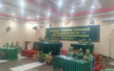 PIRNAS.COM | Putussibau – Dalam rangka menyambut hari ulang tahun ke 77 Persit Kartika Chandra Kirana tahun 2023, Ketua Persit KCK Cab L Dim 1206 Putussibau mengadakan kegiatan lomba cerdas cermat yang dilaksanakan di aula Makodim 1206/Psb, Kamis,16/2/2023. Lomba cerdas cermat ini diikuti oleh anggota Persit KCK Cab L Dim 1206 yang terdiri 5 kelompok/tim …
