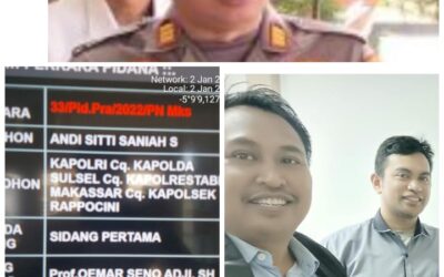 PIRNAS.COM | MAKASAR – Gugatan peraperadilan dengan nomor register perkara 33/Pld.Pra/2022/PN.Mks yang berlangsung pada senin 2 Januari 2023 ,sekitar pukul 11.11.40 wita lalu, Pengacara ibu Siti Muh Shirul Haq.SH,sangat menyesalkan atas prilaku institusi penegak hukum Polsek Rappicini Sulawesi selatan, “Dimana tidak menghadiri pemanggilan di pengadilan negri kota makassar. Dengan tidak menghadiri sidang gelar perkara melalui …