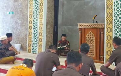 PIRNAS.COM | PEKANBARU – Usai melaksanakan Sholat Dzuhur Berjemaah di Masjid Al- Mizan, Kepala Kejaksaan Tinggi (Kejati) Riau Dr. Supardi sampaikan Tausiyah dengan Tema Keutamaan Zikir Senin (5/12/2022). Tausiyah Ba’da Dzuhur yang diikuti oleh pegawai beragama Islam di lingkungan Kejaksaan Tinggi Riau di benarkan oleh Kasi Penkum Kejati Riau Bambang Heripurwanto SH.MH. Saat di konfirmasi …