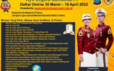 PIRNAS.COM | Batu Bara – Polri membuka penerimaan Taruna Akademi Kepolisian T.A. 2022. Hal tersebut tertuang dalam pengumuman oleh Bag SDM Polres Batu Bara melalui Media Sosial resmi Humas Polres Batu Bara. Selasa, (29/03/2022). Adapun persyaratan yang harus dilengkapi untuk proses Verifikasi di Polres Batu Bara yakni : – Asli & Copy KTP Peserta dan …