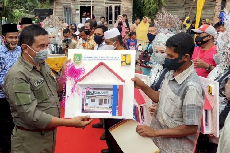 Tampak hadir Bupati Rokan Hilir H Suyatno AMP dan Kepala Balai Pradana Pemukian wilayah Riau IR Ichwanul Ihsan, anggota DPRD Rohil Herman, kepala Perkim Rohil