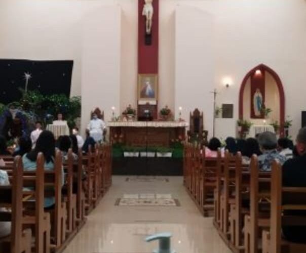 PIRNAS.COM | KOTAMOBAGU – Umat kristiani sambut Malam Misa Natal di Gereja Katolik Kristus Raja Kotamobagu, Keuskupan Manado, Kamis (24/12/2020) ketat protokol kesehatan.