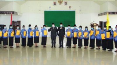 PIRNAS.COM | DAIRI – Sebanyak 27 orang Bidan Pegawai Tidak Tetap (PTT) formasi tahun 2019 dilantik oleh Bupati Dairi Dr. Eddy Keleng Ate Berutu menjadi Pegawai Negeri Sipil (PNS) di lingkungan Pemerintah Kabupaten Dairi pada Rabu (30/9/2020) di gedung Balai Budaya Sidikalang. Pelantikan Bidan PTT tersebut turut dihadiri oleh Wakil Bupati Dairi Jimmy Andrea Lukita Sihombing, SH, Asisten Pemerintahan dan Kesejahteraan Rakyat Johnny Hutasoit, Asisten Administrasi Umum Drs. Sudung Ujung, Staf Ahi Bupati Dairi dan Pimpinan OPD Kabupaten Dairi.