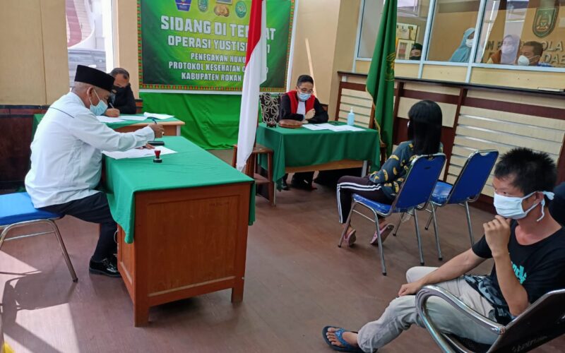 PIRNAS.COM | ROHIL – Tim gabungan TNI POLRI DISHUB dan SATPOL PP, Jumat 23 April 2021 menggelar Operasi Yustisi Protokol Kesehatan bagi yang melanggar terpaksa harus mengikuti sidang di tempat. Pemandangan ketika Operasi Yustisi di gelar terlihat Ramai terjaring karena tidak memakai masker ketika mengenderai kendaraan dan berada ditempat umum. Yang terjaring langsung di giring dan di sidang di tempat di halaman kantor BPKAD Rohil, di jalan Merdeka Bagan Siapi-api.