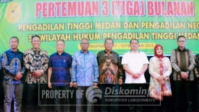 Labuhanbatu-Pemerintah Kabupaten Labuhanbatu terpilih menjadi tuan rumah dalam acara Pertemuan Tiga Bulanan Pengadilan Tinggi Medan dengan Pengadilan Negeri Se-Wilayah Hukum Pengadilan Tinggi Medan di Kantor Pengadilan Negeri Labuhanbatu, Jalan Ujung Bandar Rantauprapat. Jumat (17/02/2023).