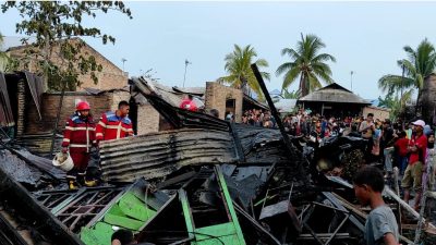 PIRNAS.COM | BATUBARA – Sebanyak sembilan unit rumah terbakar rata dengan tanah dan lima rumah terasnya saja, dilalap sijago merah dengan hebat dini hari sekira pukul 04.30 WIB. Beruntung tidak ada korban jiwa dalam peristiwa ini, namun korban mengalami kerugian ratusan juta. Kamis, 3/2/2022.