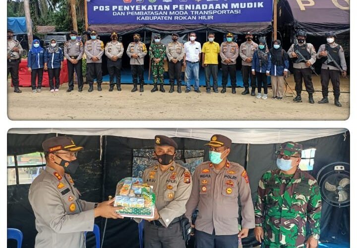 Selain melakukan peninjauan, Kapolres juga menyerahkan bingkisan kepada para personil yang berjaga di Pos Perbatasan berupa makanan, buah-buahan serta minuman. Giat peninjauan dan pengecekan Pos Peniadaan Mudik ini di hadiri oleh Kapolres Rokan Hilir AKBP NURHADI ISMANTO.SH.SIK. Dan beserta rombongannya yaiitu :