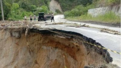 Akibat Tingginya Curah Hujan, Badan Jalan Yang Berada di Jalan Besar Gunungmeriah Desa Kutabayu Kecamatan Gunungmeriah Kabupaten Deliserdang, Longsor Dengan Kedalaman Sekira 7 Meter