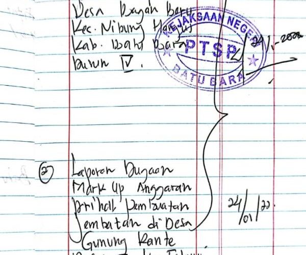 Mintak kepada Kajari Batu bara surat laporan tentang aliansi pres Batu bara mengenai dugaan terhdap Kepala Desa gunung Rante mohon dipercepat atau diproses secara hukum.