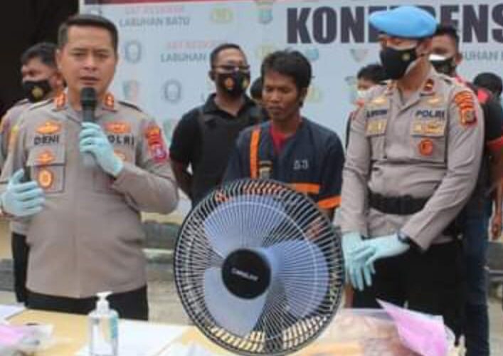 PIRNAS.COM | LABUHANBATU – Seorang ayah berinisial S (32) warga Kotapinang, Kabupaten Labuhanbatu Selatan tega nodai anak kandung atau putrinya sendiri hingga organ vitalnya berdarah, hal tersebut terungkap saat pengungkapan kasus konferensi pers di Mapolres Labuhanbatu, Sumatera Utara, jum’at (1/10/2021).