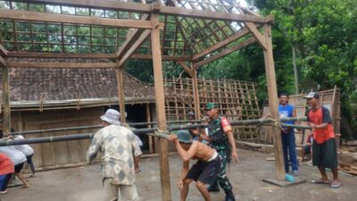 Babinsa Bantu Warga Memindahkan Rumah Secara Bergotong Royong