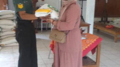 Babinsa Serengan Bantu Pendistribusian Bantuan Beras Kepada Warga Kurang Mampu