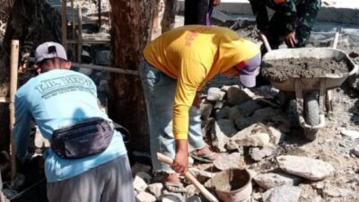 PIRNAS.COM | Sragen – Berbagai upaya dilakukan Serda Supriyanto Babinsa Ds.Kalimacan Koramil 18/Kalijambe Kodim 0725/Sragen untuk mewujudkan ketahanan pangan masyarakat salah satunya melalui pembangunan infrastruktur pertanian seperti pembangunan talud badan irigasi yang terletak di Dk.Malangan Rt.14 Ds.Kalimacan Kec.Kalijambe, Jum’at ( 13/10/2023 )