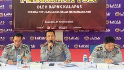 PIRNAS.COM | Banjarbaru – Kepala Lembaga Pemasyarakatan (Lapas) Kelas IIB Banjarbaru, I Wayan Nurasta Wibawa memberikan penguatan tugas dan fungsi (tusi) kepada seluruh Pegawai, mulai dari Pejabat Struktural, Staf, dan Petugas Regu Pengamanan yang berlangsung di Aula Lapas Banjarbaru, (10/11/2023).